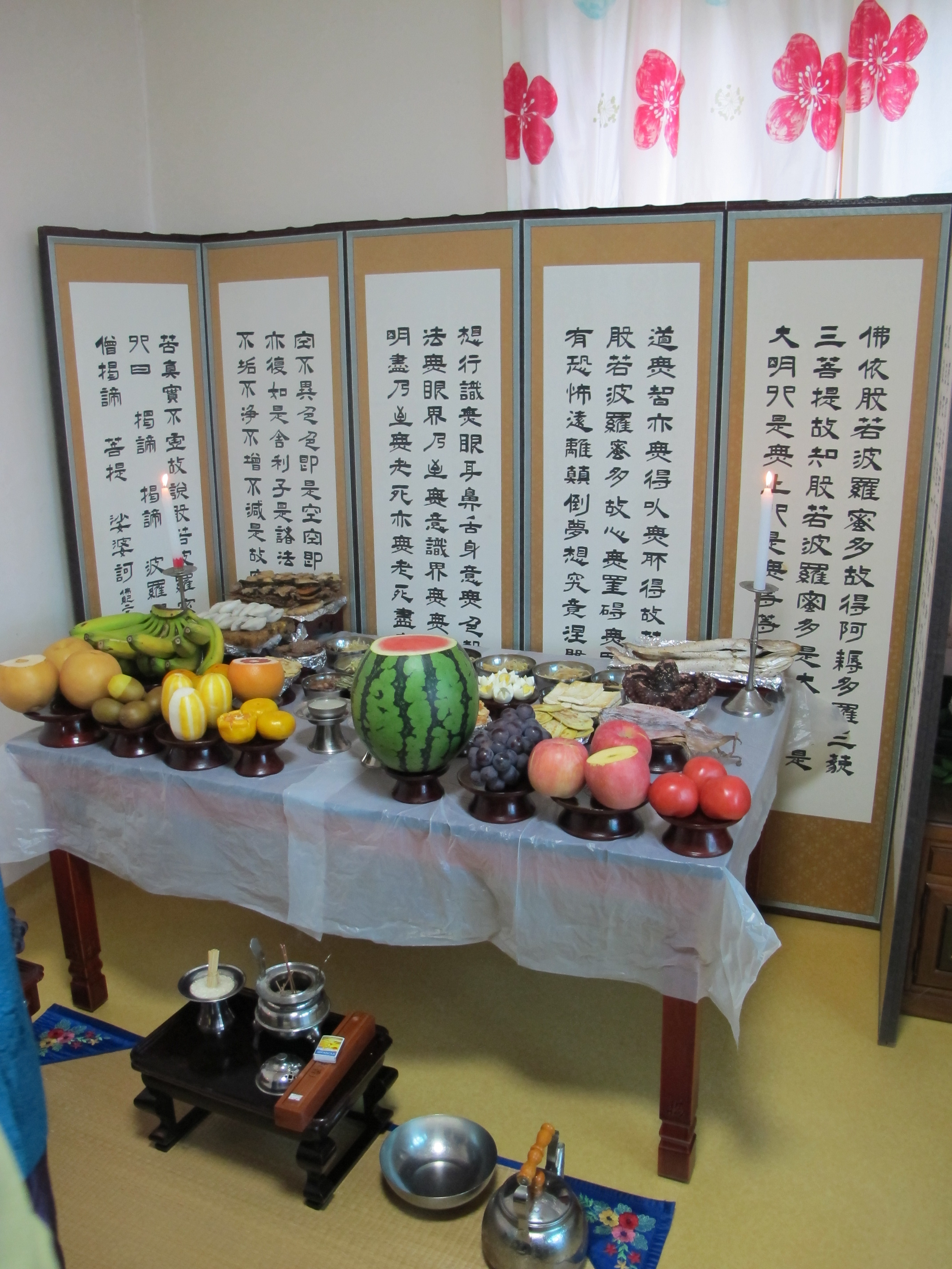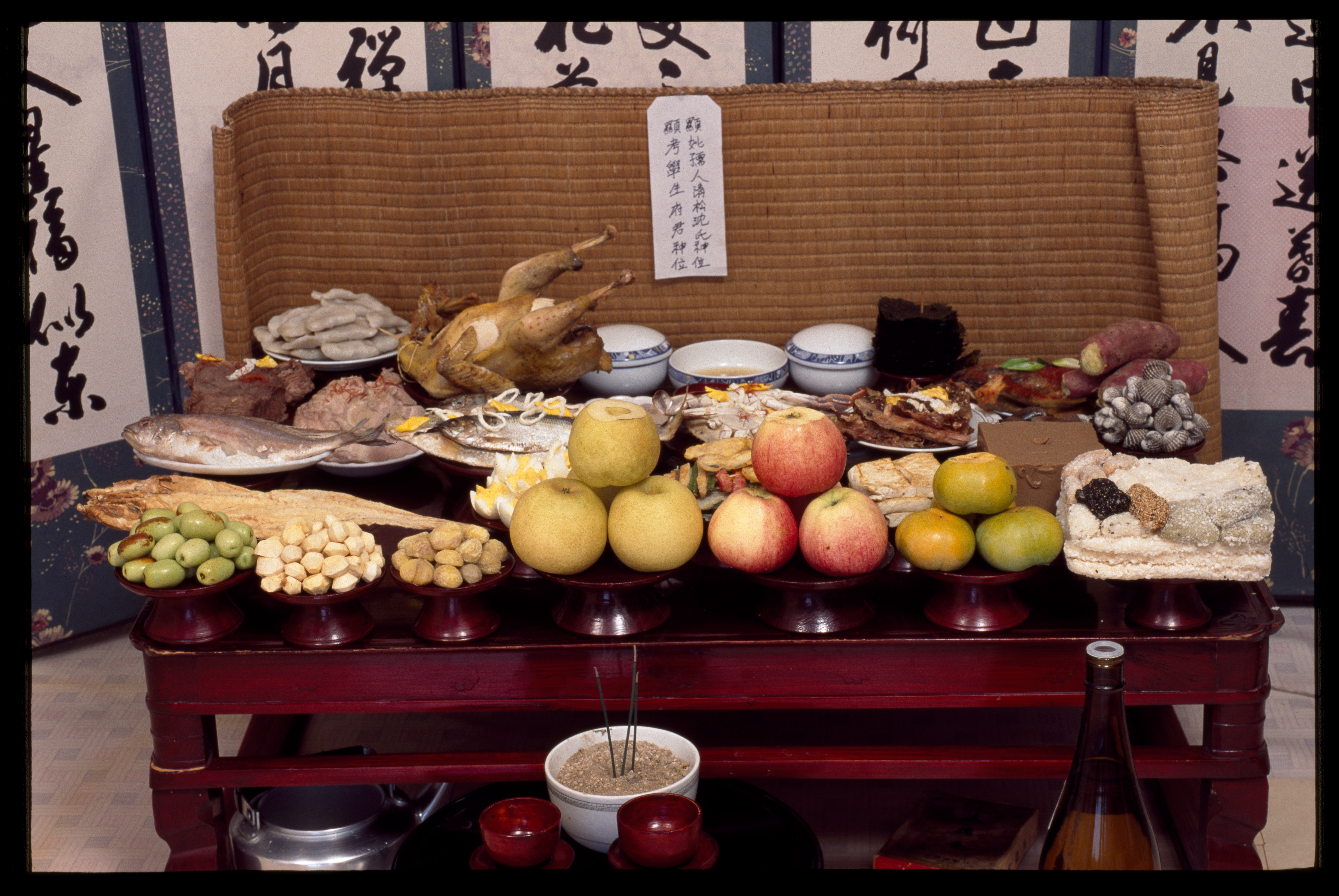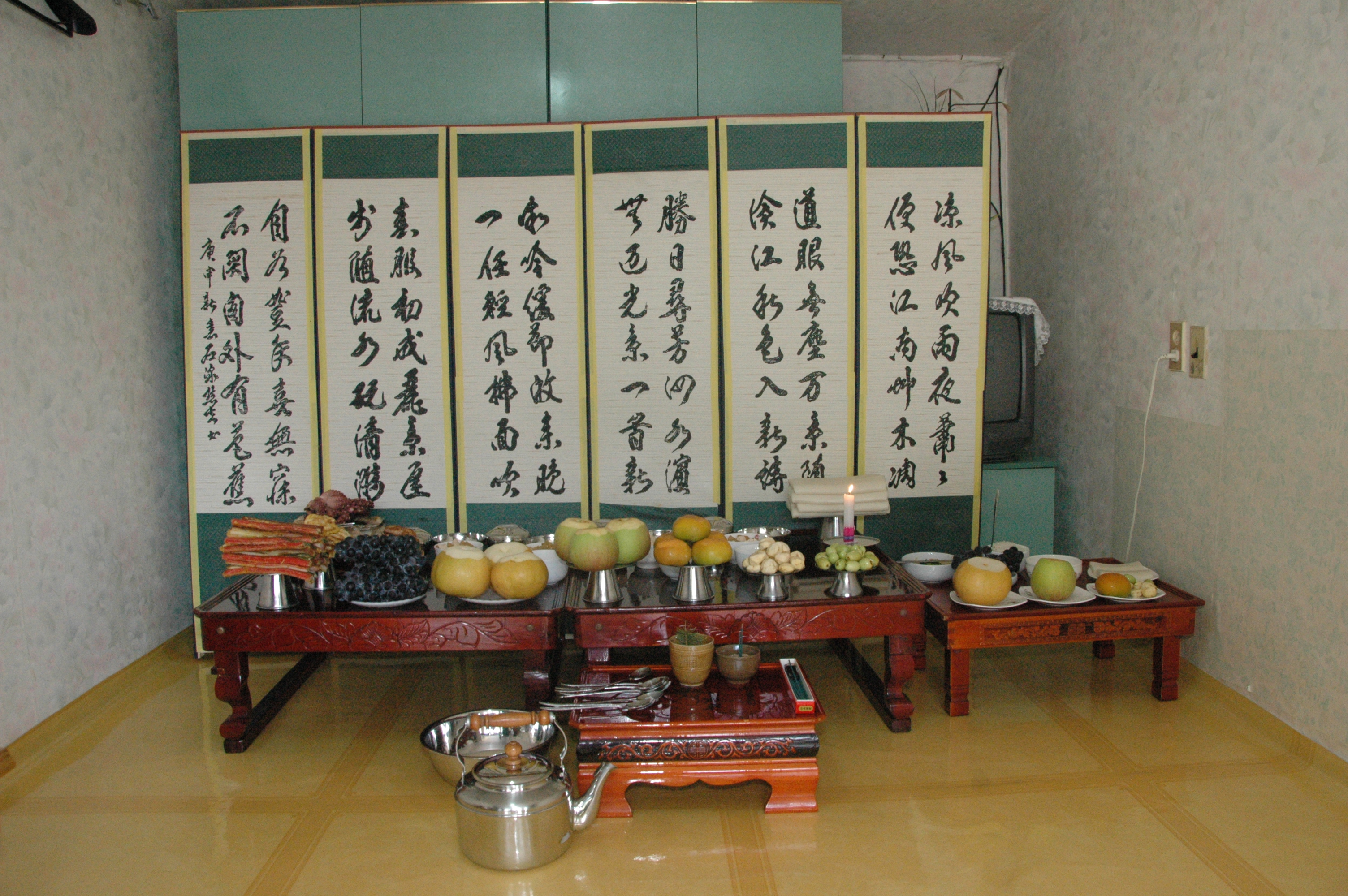 차례[1]는 명절[2]이나 정해진 절기에 조상들에게 지내는 제사입니다. 옛날에는 차례를 지내는 날이 많았지만, 오늘날에는 주로 설[3]과 추석[4]에만 지냅니다. 그리고 예전에는 사당에서 차례를 많이 지냈지만, 요즘은 대부분 집에서 지냅니다. 한식[5]과 추석에는 산소에 가서 차례를 지내기도 합니다. 차례는 간단히 지내는 제사입니다. 그래서 차례를 지내는 방법과 음식이 다른 제사에 비해 간단합니다. 대신 ‘절식’이라고 부르는 명절 음식을 차례상에 올리는 특징이 있습니다. 설 차례에는 떡국[6]을 올리고, 추석 차례에는 송편[7]을 올리는 것이 그러한 예입니다. 농사를 주로 짓던 옛날에는 설에 지내는 차례가 조상들에게 드리는 새해 인사였고, 추석에 지내는 차례가 한 해 농사의 수확에 대한 감사 인사였습니다.