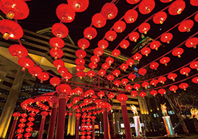 원소절에는 전국 각지에서 각양각색의 화려한 등이 거리를 장식하며, 저녁에는 삼삼오오 짝을 지어 거리에서 등불을 감상하고 폭죽을 터뜨립니다.